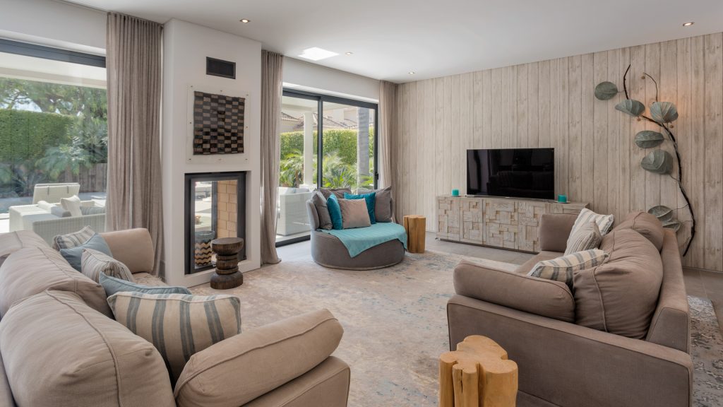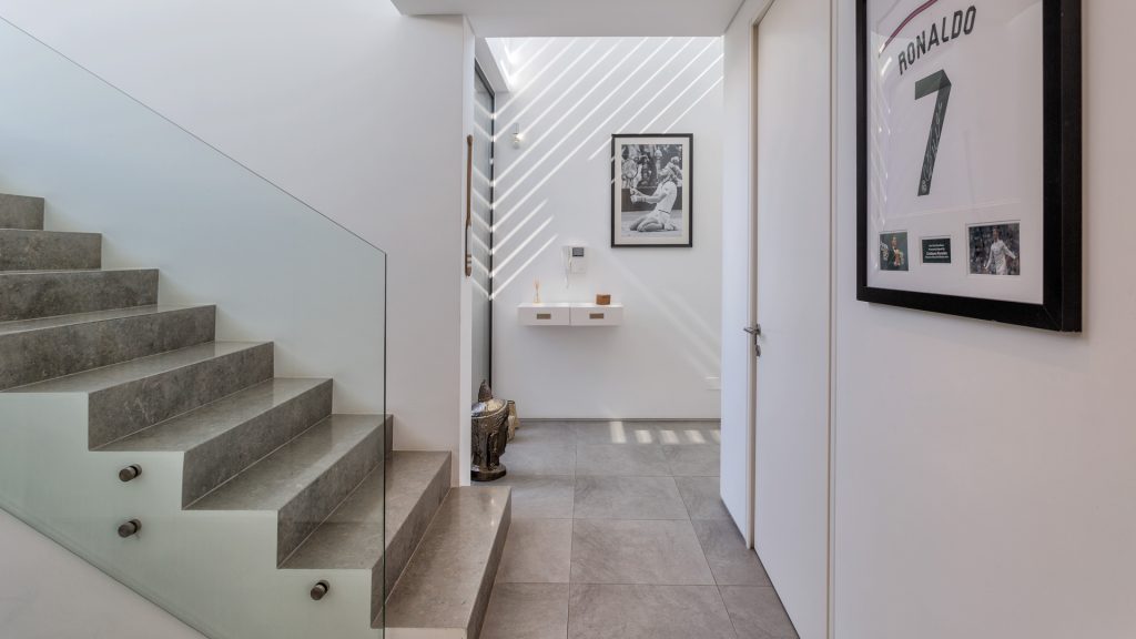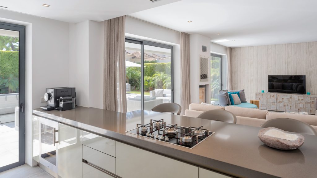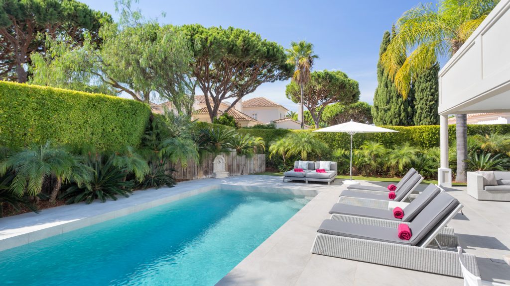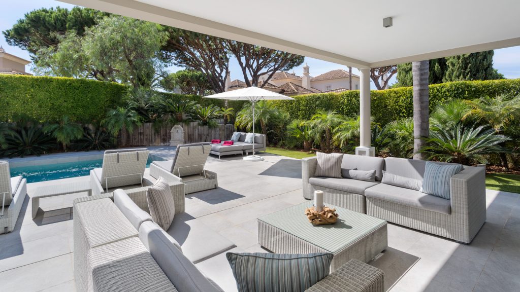 An elegant four bedroom recently refurbished villa in a cul-de-sac near the Vale do Lobo reception. The ground floor is comprised of the entrance hall, cloakroom, storage room, fully fitted & equipped kitchen, dining/living room with feature fireplace & pool deck access and two double suites. The first floor comprises the master suite and fourth double suite, both with stretching terrace & pool deck access. The roof terrace has plenty of sunbathing space, lounge area & dining space to take in the wonderful sea view & sunset. The pool deck is south facing with a mature garden surrounding. There is ample sunbathing space, dining area, BBQ & more.